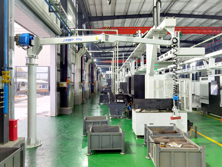 懸臂吊起重機工作強度為輕型,起重機由立柱,回轉臂回轉驅動裝置及電動葫蘆組成,立柱下端通過地腳螺栓固定在混凝土基礎上,由擺線針輪減速裝置來驅動懸臂回轉,環鏈電動葫蘆在懸臂工字鋼上作左右直線運行,并起吊重物。起重機懸臂有箱形梁結構,和型鋼結構,自重輕,跨度大,起重量大,經濟耐用。