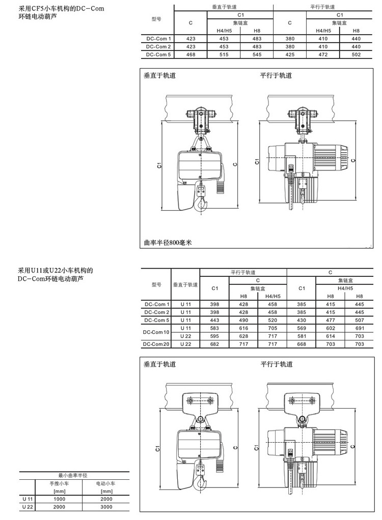 DC-Com型環鏈電動葫蘆可方便地安裝到KBK標準組件軌道上。新型的U11/U22小車機構可在工字鋼或H型鋼軌道上來去平滑自如。