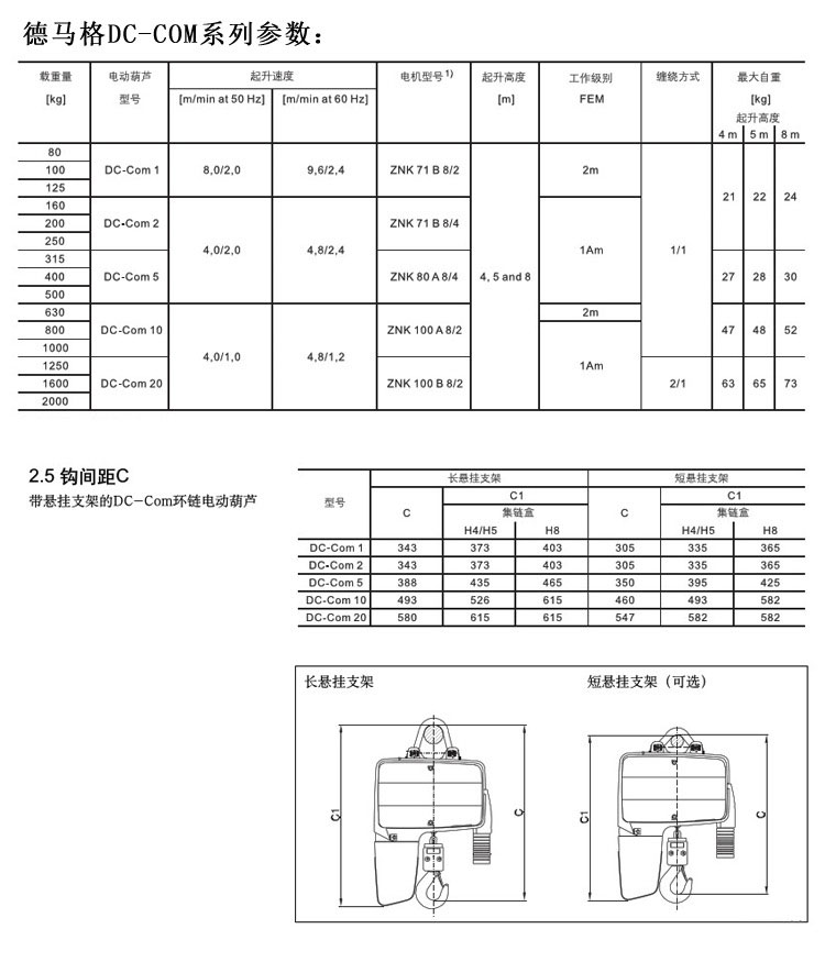 DC-Com型環鏈電動葫蘆適用于一般應用。同時DC-Com也具備德馬格產品的高質特征。