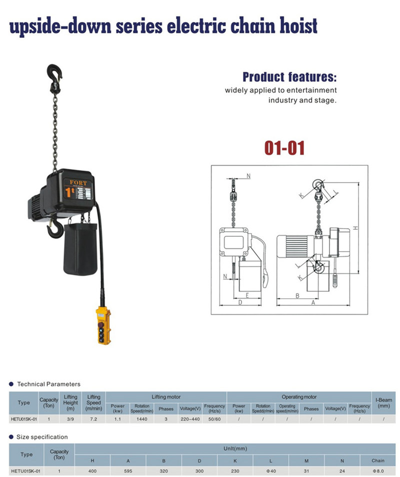 由電動(dòng)機(jī),傳動(dòng)機(jī)構(gòu)和鏈輪組成。起重量為0.3-32噸,起升高度為3~120米。日式環(huán)鏈電動(dòng)葫蘆的使用范圍很廣,應(yīng)用于車間、倉(cāng)庫(kù)、風(fēng)力發(fā)電、物流、碼頭、建筑等場(chǎng)合。此款電動(dòng)葫蘆與單雙梁起重機(jī),旋臂吊,龍門架配合使用,可用于吊運(yùn)或者裝卸貨物,也可以用于模具的安裝調(diào)試與維修。操作人員用按鈕在地面跟隨操縱,也可在操控室內(nèi)操縱或采用有線(無(wú)線)遠(yuǎn)距離控制。這款電動(dòng)葫蘆既可固定懸掛使用,又可配電動(dòng)單軌小車及手推/手拉單軌小車行走使用。