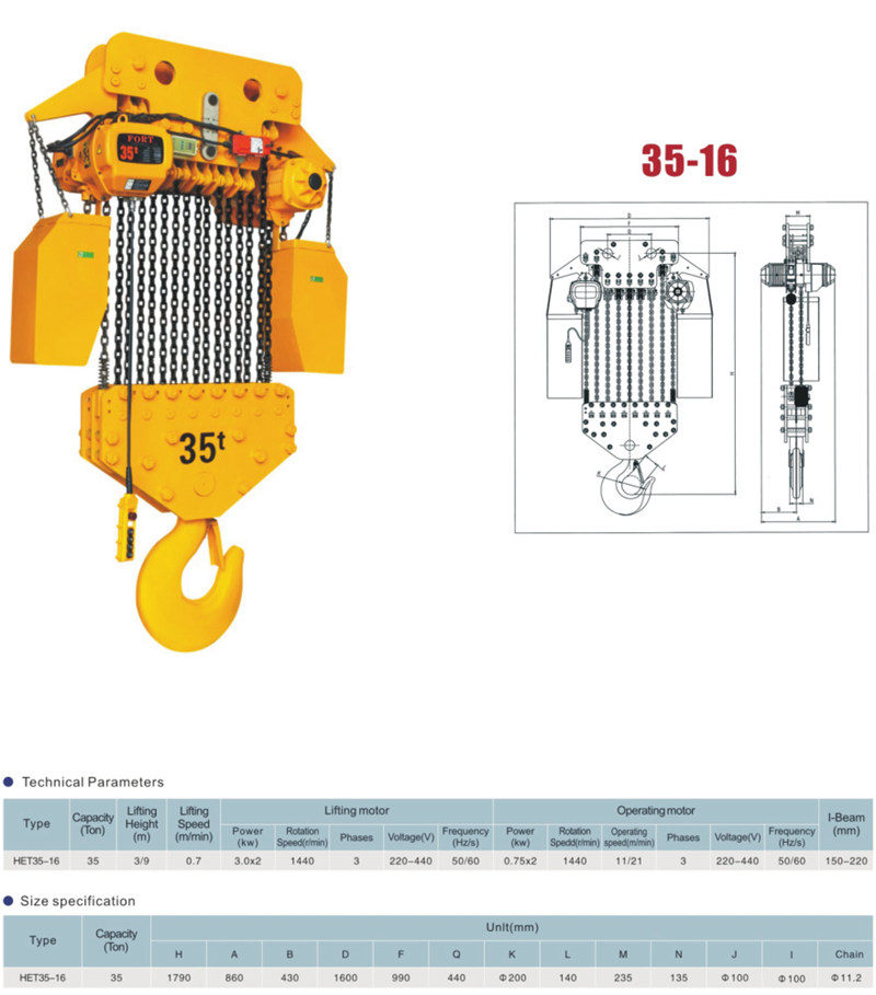環鏈電動葫蘆5T產品規格: