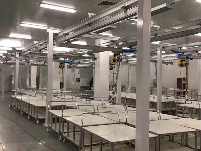 提升的設計可依據顧客目前工業廠房構造及室內空間規定,出示自立柱式 懸架式 無承重梁式低凈空等安裝方法。 對于不一樣負荷規定,可出示不銹鋼板路軌用以清潔室內空間及不銹鋼路軌。