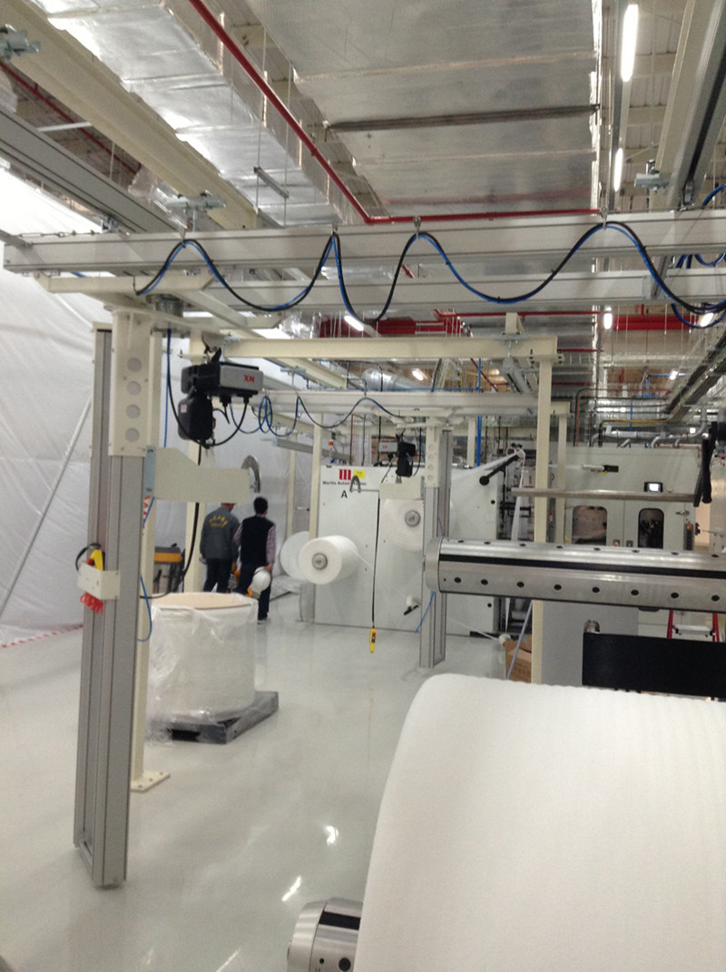 高韌性路軌及可擴展桁架結構設計方案,使之總體不用附加提升工型鋼懸架,進而降低總體重量,起重吊裝工作能力達到3000千克,經濟發展環境保護。非常是桁架結構的提升可讓間距達9m,大幅度降低立桿或適用件總數,降低室內空間干預,使工業廠房合理布局美觀大方簡約。