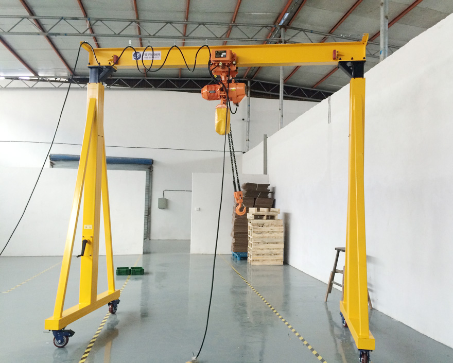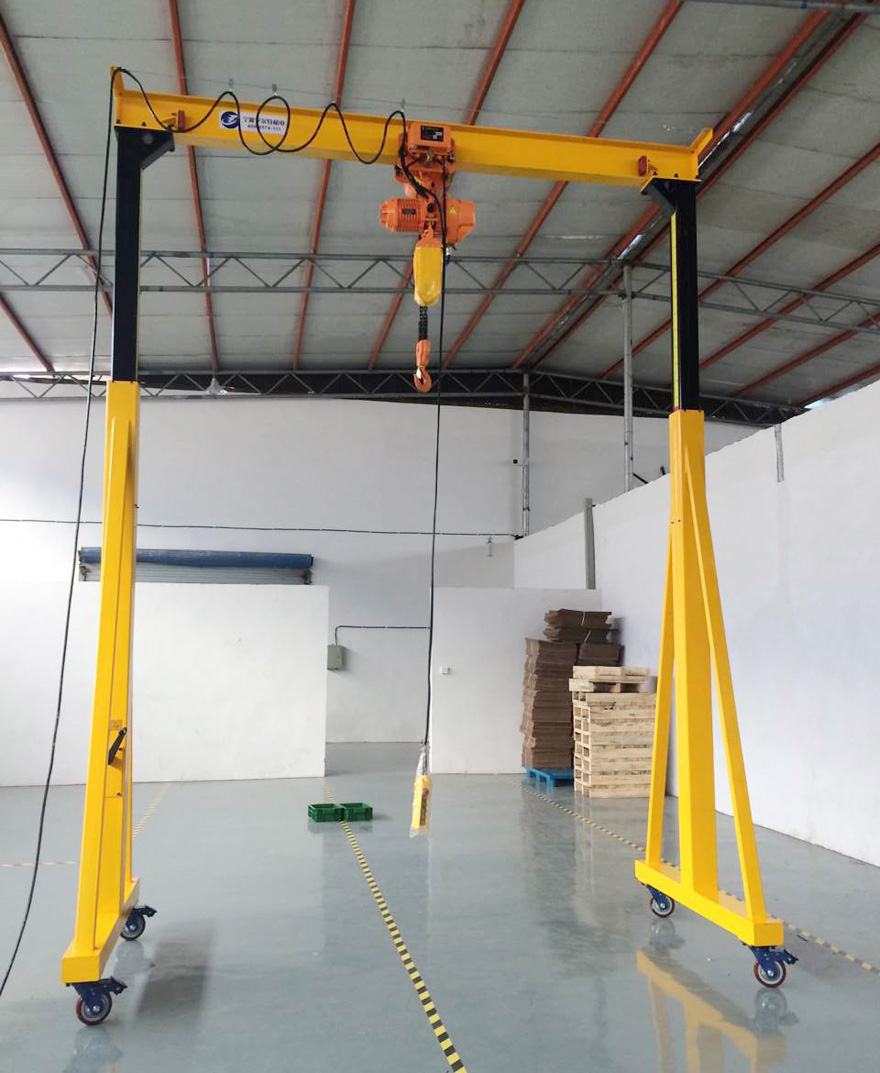 龍門吊是公司設計生產的一款輕小型起重設備主要用于車間日常生產需要搬運設備、倉庫進出貨,起吊維修重型設備及材料運輸的需要。內容:該移動龍門架優點是可多方位移動,可快速拆卸安裝,占地面積小,用微型汽車就可轉移到另一個場地安裝使用。